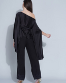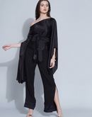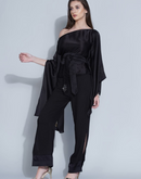 PONCHO TOP AND PANT WITH BELT – BLACK