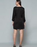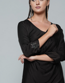 Black Modal short cowl dress with V-neck and 3/4 sleeve