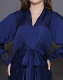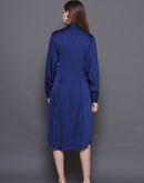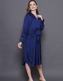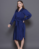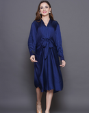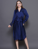 Front tie up dress in modal satin, mid calf length with our signature owl on the sleeve.