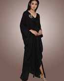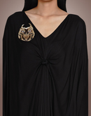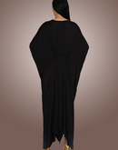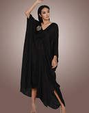 Long kaftan in modal with irregular hemline and knot detail in black.