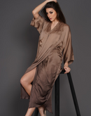 Taupe Ombre modal drape dress with V neck and 3/4 sleeve.