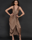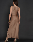Sleeveless modal dress with front knot, V-neck and a full skirt.