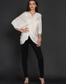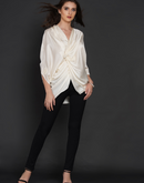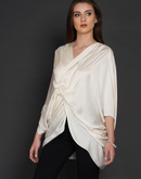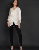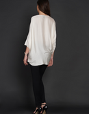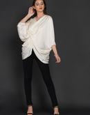Side knot symmetrical top with three quarter sleeves in off-white