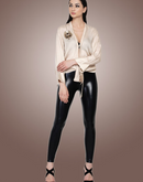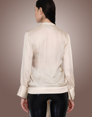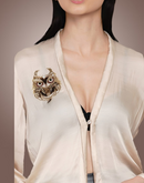 Modal shirt, front open in wide cuffs and knot detail and concealed button detail at the bust in beige.